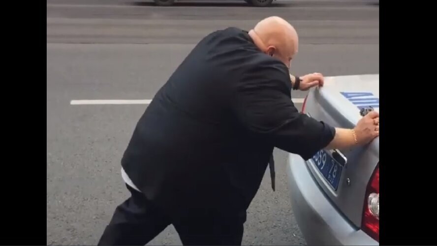 Мужчина был в своём образе хулигана и попытался сдвинуть полицейскую машину с места аварии. Однако у него ничего не вышло.