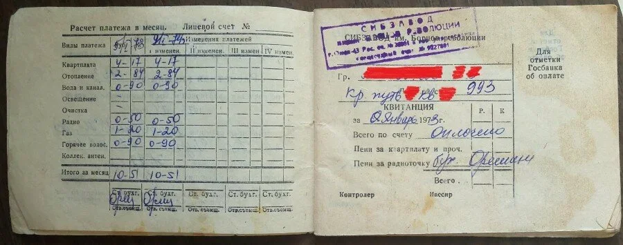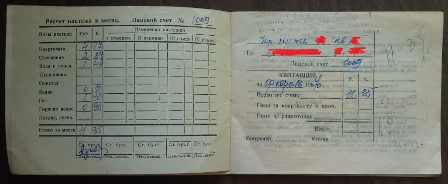 Кроме бесплатных квартир, советская власть держала на очень низком уровне коммунальные платежи за пользование этими самыми квартирами. В этом можно убедиться на примере сканов платежек.