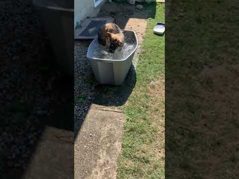 Occurred on July 19, 2020 / Manchester, New Hampshire, USA "Ares was hot and the kiddie pool was not deep enough. So I filled a huge Rubbermaid tub and he ke...