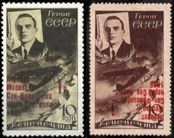 В 2008 году на аукционе Cherrystone была продана марка, оценённая коллекционерами в 718,54 тыс. долларов. Карточка является авиапочтовой маркой СССР с изображением лётчика С. А. Леваневского (с надпечаткой). Выпущена 3 августа 1935 года в честь перелёта Москва — Северный полюс — Сан-Франциско. Ограниченный тираж таких марок имеет и свои разновидности — со строчной и прописной буквой «ф» в названии американского города. Экземпляров с маленькой «ф» насчитывается всего 10.