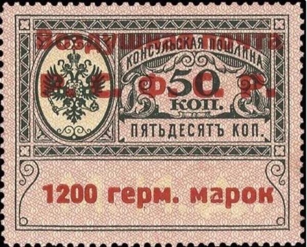Данная марка получила высокую оценку филателистов всего мира. Марка была напечатана по заказу советского посольства в Германии. Использовалась для франкировки служебных писем, которые переправлялись воздушным путём из Германии в Москву. Предусматривалось восемь номиналов знака — от 12 до 12 тыс. немецких марок. Ценность обозначалась соответствующей надпечаткой на лицевой стороне. Однако все нюансы выпуска так и не были согласованы с советским правительством, поэтому оно издало приказ изъять знаки из оборота и прекратить дальнейшее тиражирование. Всего было выпущено около 50 знаков такого номинала. Считается, что сохранилось только четыре экземпляра. Каждый оценивается почти в 63,250 долларов.
