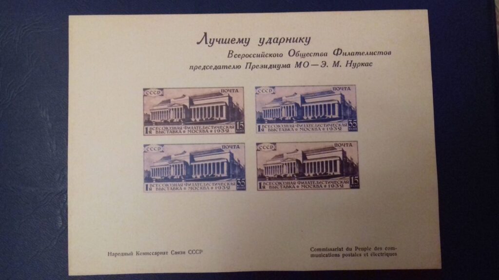 В 776,25 тыс. долларов обошёлся единственный оставшийся в сохранности экземпляр именной «картонки» с первой Всесоюзной филателистической выставки, которая проходила в 1932 году.