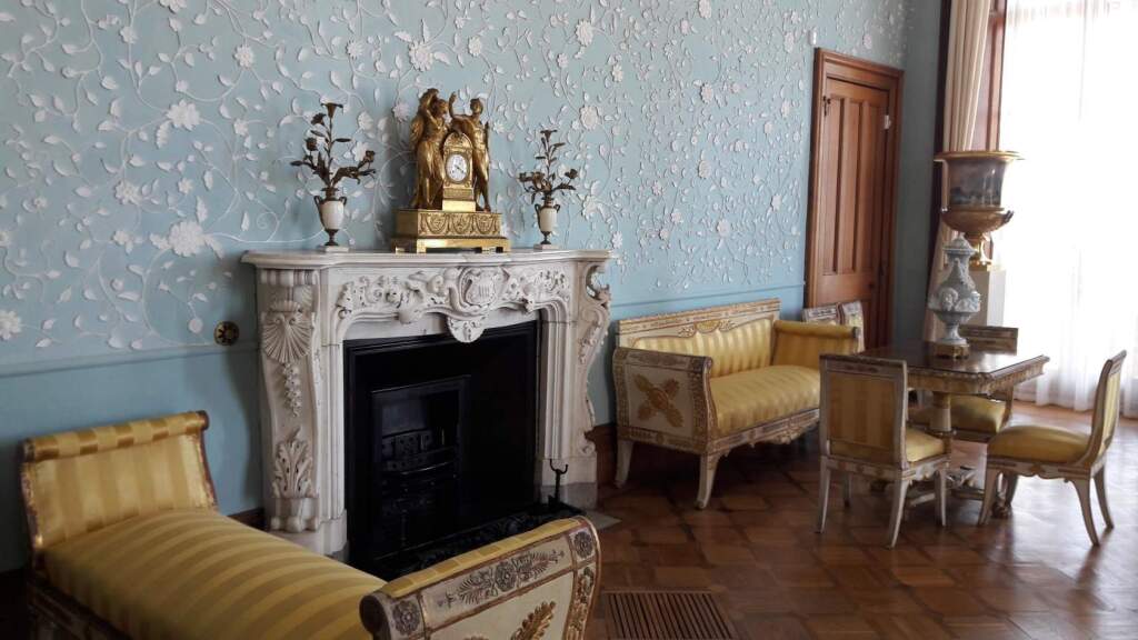 Девять каминов в парадных залах дворца до сих пор считаются действующими, но ими запрещено пользоваться;