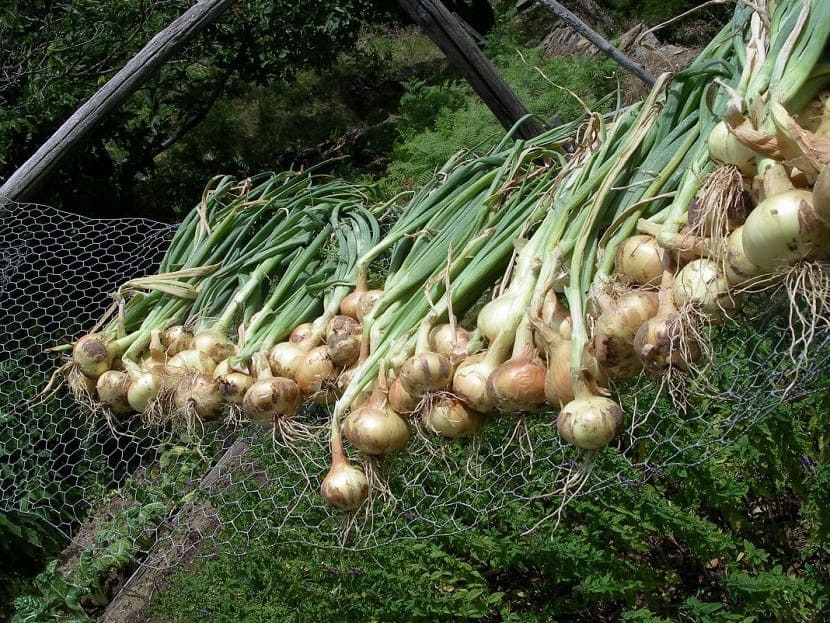 Когда синоптики предсказывают сухую и теплую погоду, овощ можно сушить прямо на грядке. Для этого его раскладывают рядами вместе с перьями и сушат недели две.