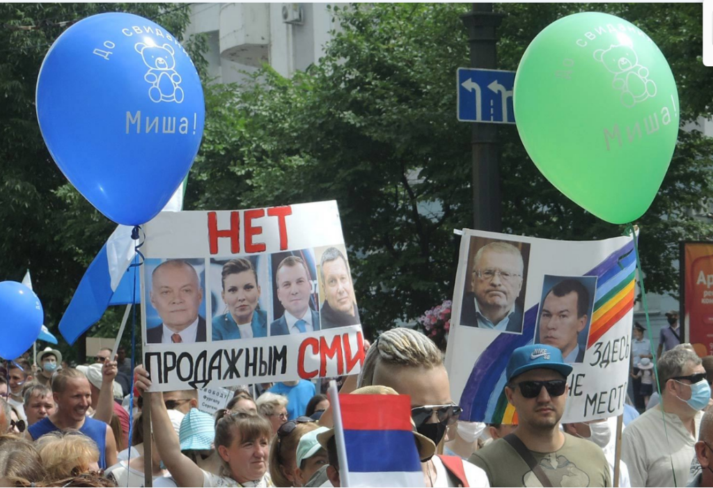 Марш протеста после очередного митинга. Хабаровчане - против продажных СМИ и их ведущих Киселева, Скабеевой, особенно Соловьева. Они замалчивают многотысячные митинги на Дальнем Востоке.