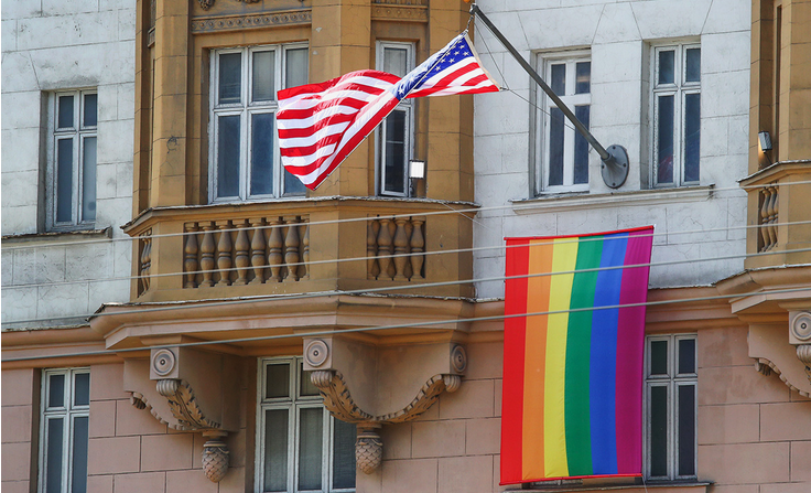 25 июня посольство США в Москве опубликовало фото, на котором видно, что на здании посольства вывешен радужный флаг. В МИДе на это отреагировали песней El Bimbo на своей странице в Facebook****. Эта мелодия звучала в сериале, когда его персонажи попадали в гей-бар «Голубая устрица».