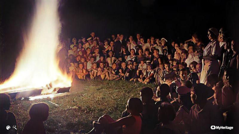 Костер в летнем пионерском лагере. Московская область, 1938 год