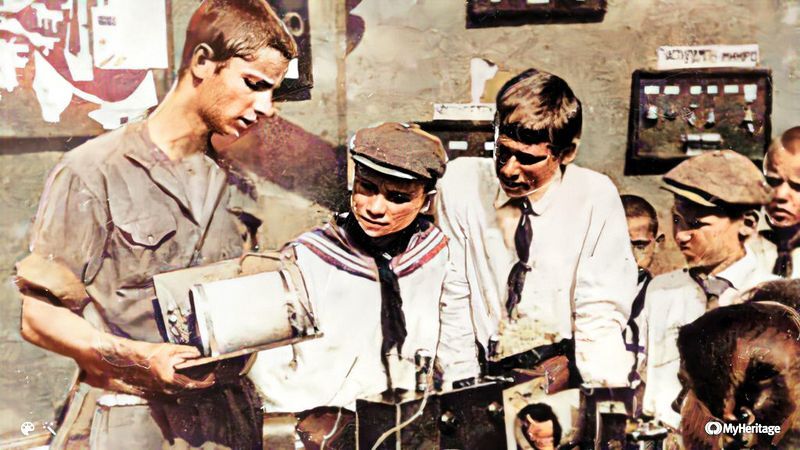 Пионеры изучают устройство радиоприемника. 1925 год