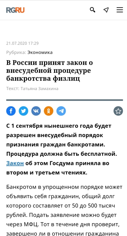 Сразу хочется вот что отметить: многие СМИ недавно распространили информацию, что закон о внесудебном банкротстве уже принят.