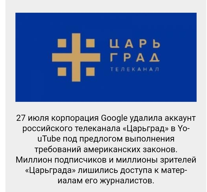 Гугл американский, значит если американцы закрыли доступ к каналу, который явно не луюбим нашему руководству страну и т.д.из этого вывод, что все делает наше руководство наруку американскому правительству.