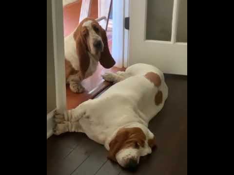 Occurred on July 22, 2020 / Gaston, South Carolina, USA "Sebastian a European Basset is a gentle big boy wanting to get into the room but Dominique a Brazili...