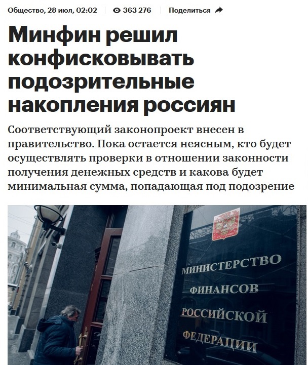 Минфин готовит изменение в бюджетное законодательство, чтобы синхронизировать его с гражданским-«В Гражданский кодекс сейчас вносятся уточняющие поправки, что конфисковано в установленных случаях может быть не только имущество, в отношении которого не представлены доказательства, подтверждающие приобретение имущества на законные доходы, но и денежные средства в случае отсутствия доказательств законности их получения» (РБК)
