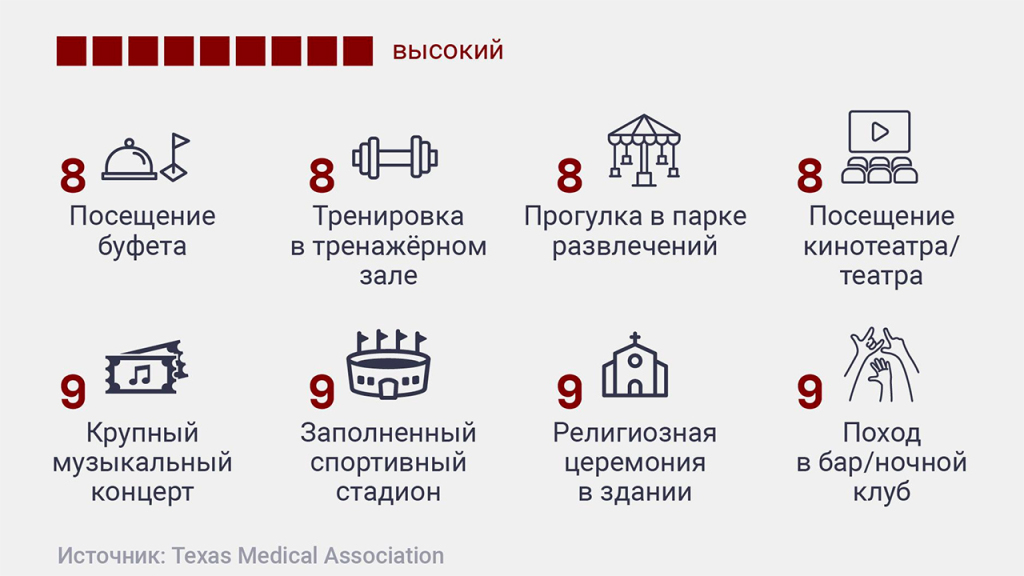 Для вас, мой читатель, я подготовила короткую инструкцию в виде слайдов, где перечислены наиболее опасные места опасной инфекцией COVID-19.