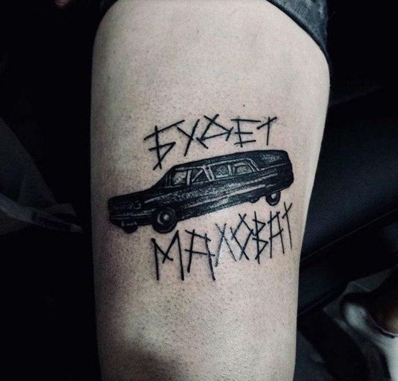 Картррайт предвидел свою кончину. И на тату изобразил надпись "Будет маловат" с катафалком...