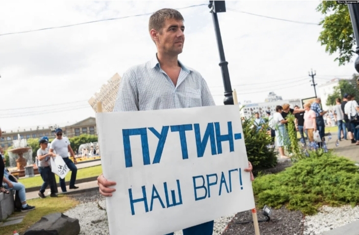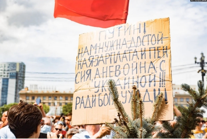 Вместе с требованиями вернуть губернатора Сергея Фургала протестующие выдвигают и более глобальные требования и напрямую обращаются к Обнулённому правителю — на плакатах можно прочитать такие надписи, как "Путин, ты утратил наше доверие", "Путин, нам нужна достойная зарплата, а не война с Украиной", и даже "ПТН ХЛО":