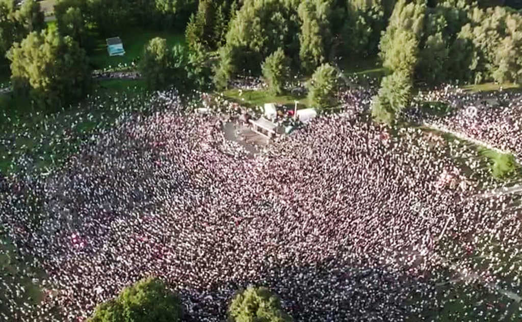В Минске прошел митинг в поддержку кандидата на должность президента Белоруссии Светланы Тихановской. По данным правозащитного центра «Весна», в нем приняли участие 34 тыс. человек.