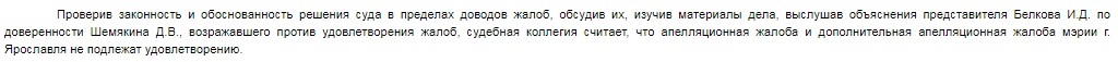 На данное решение мэрией Ярославля была подана апелляционная жалоба. Довод сводился к следующему: "Полагаем, что истец нарушил пункт 10.1 ПДД, поэтому сумма должна быть уменьшена".