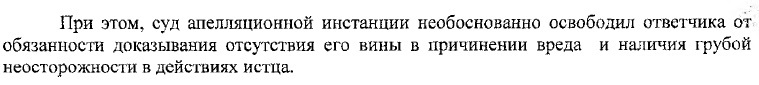 7. Суд апелляционной инстанции не указал ни одного доказательства, из которого усматривалась бы вина Белкова И.Д. в дорожно-транспортном происшествии, бремя доказывания отсутствия вины возложено на самого истца. Так, на листе 3 определения указано: «...из объяснения Белкова И.Д. не следует что имелись какие-либо препятствия для обнаружения ямы в дорожном полотне, и что, управляя транспортным средством, он не имел возможности обнаружить опасность и принять меры для исключения наезда на яму». При этом ссылки на доказательства со стороны ответчика, подтверждающие возможность обнаружения такой ямы, судом апелляционной инстанции не указаны.