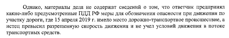 Однако сведений о том, что данный ответчик предпринял предусмотренные Правилами дорожного движения Российской Федерации меры для обозначения опасности при движении по участку дороги, материалы дела не содержат, судом апелляционной инстанции не добывались и не исследовались.
