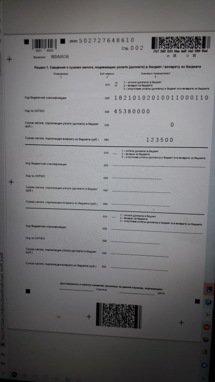 Если вычет заявлен за предыдущие годы, нужно подать налоговую декларацию по форме 3-НДФЛ. За каждый год — отдельная декларация. Если вычет по одной квартире заявляют два супруга, то каждый подает декларацию за себя. К декларации нужно приложить полный пакет документов: достаточно их копий. Кроме декларации и подтверждающих документов нужно приложить заявление на возврат налога с реквизитами, куда перевести излишне уплаченную сумму НДФЛ.