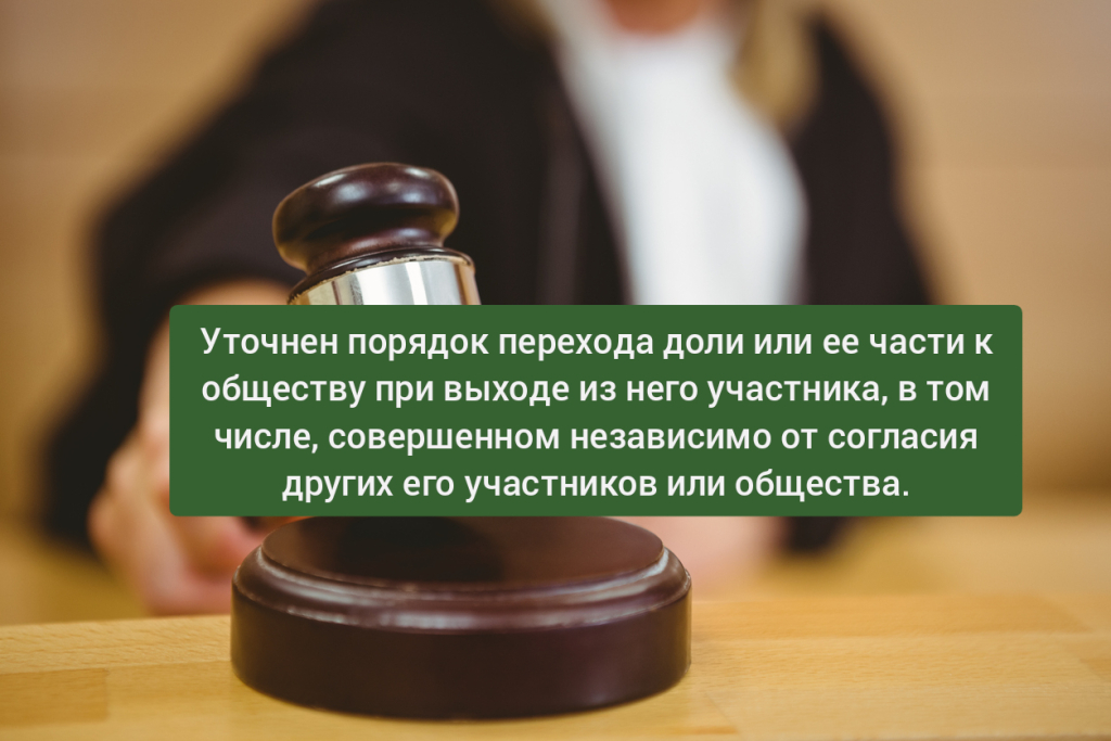 Уточнен порядок перехода доли или ее части к обществу при выходе из него участника.