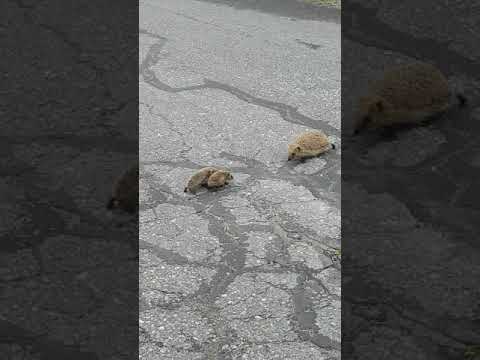 Occurred on July 13, 2020 / Palokka, Finland "Little hedgehogs calling for their mother so sweetly. The mother takes care that everyone gets across the road ...
