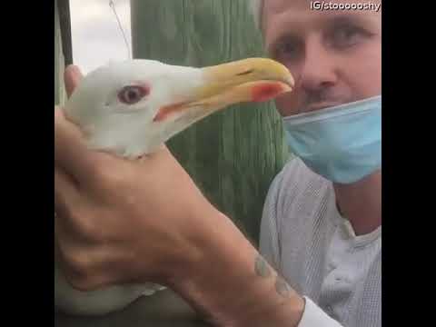 Occurred on July 8, 2020 / "I found this seagull entagled in fishing line and decided to set it free. It was not impressed by being held and fought with me t...