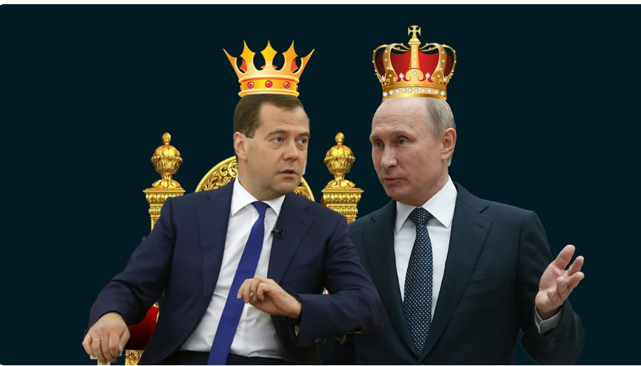 Резервный вариант... Верный сподвижник Дмитрий Медведев всегда готов подменить нынешнего властителя Путина... Снова "рокировочка на троне"?