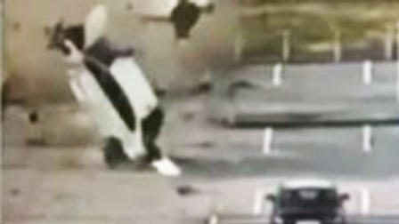 В Екатеринбурге такси трижды перевернулось в воздухе. Инцидент был запечатлен камерой видеонаблюдения.