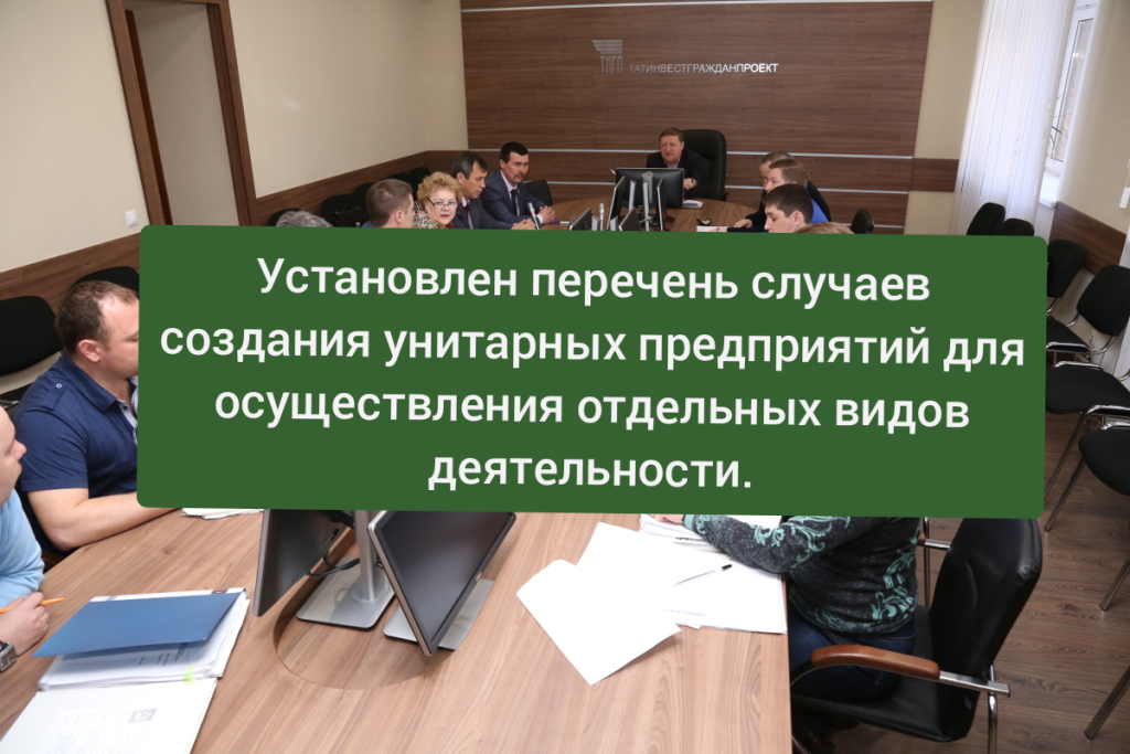 Установлен перечень случаев создания унитарных предприятий для осуществления отдельных видов.