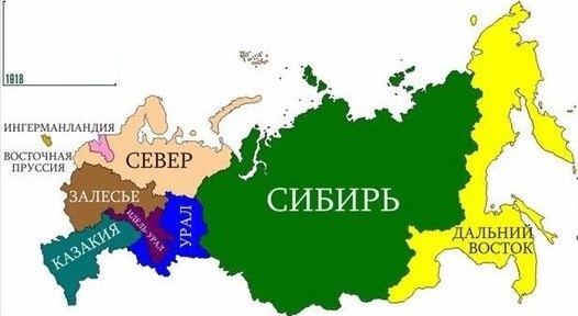 Вот есть кто-то, кто сумел вытащить карту России за 1918 год, где территория Дальнего Востока, Сибири, Урал, Кавказа…Даже Казакия существует на карте. Россию продолжают пытаться расчленить