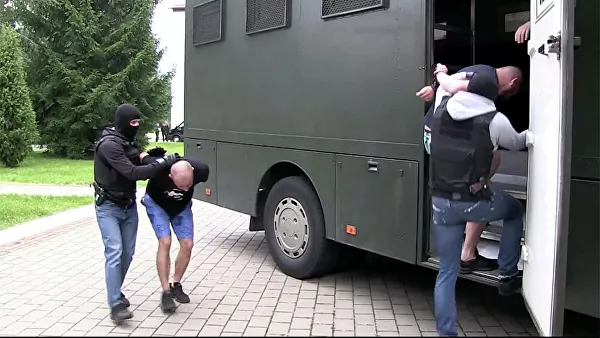 Кадр оперативного видео задержания предположительно 32 членов частной военной компании в Белоруссии