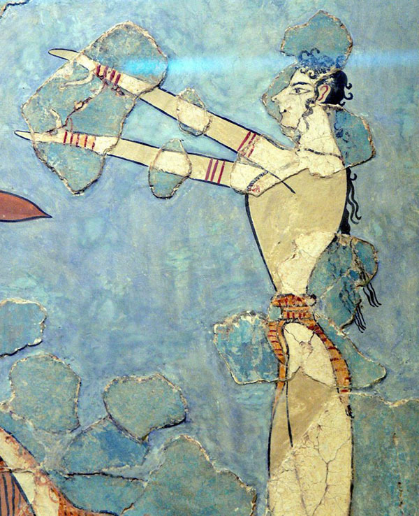 Эта тенденция тем более показательна, что женщины явно не хотели уступать пальму первенства представителям «сильного пола» даже и в этих своеобразных корридах, несомненно, требовавших от их участников огромной физической выносливости, силы, ловкости и отваги. На известной «фреске тореадора» из Кносского дворца, кроме мужчины-акробата, совершающего рискованный прыжок через быка, мы видим также двух девушек, одетых по мужской моде в короткие передники с туго стянутыми на талии поясами и легкие полусапожки.