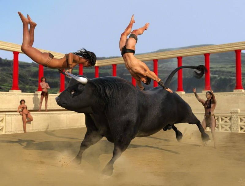 Недавно мне попалась на глаза публикация о крито-микенской цивилизации, а конкретно - о ритуальных (обрядовых) играх с быком.