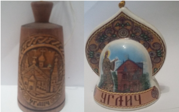 Углич. Колокольчик уникален тем, что он деревянный. Не звенит. А другой вполне звонко сообщает о себе
