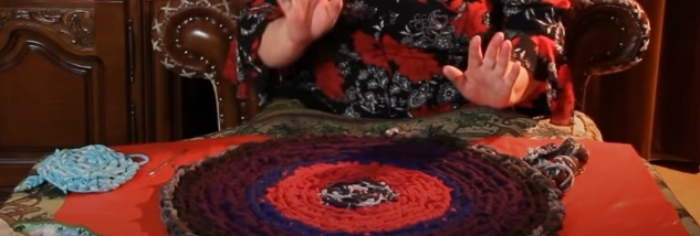 Преимущество этого способа изготовления в том, что нити не затягиваются, вещь получается пышной и объемной, мягкой и воздушной. С помощью рук можно сделать не только ковер по кругу. Так же, набирая петельки пальцами можно связать одеяло, плед или накидку на кресло. Для плотных и теплых вещичек хорошо подойдут старые свитера.
