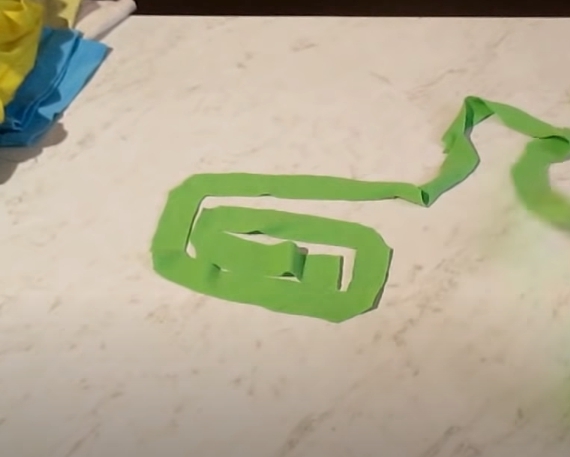 Когда все полотно разрезано, получается длинная веревочка.