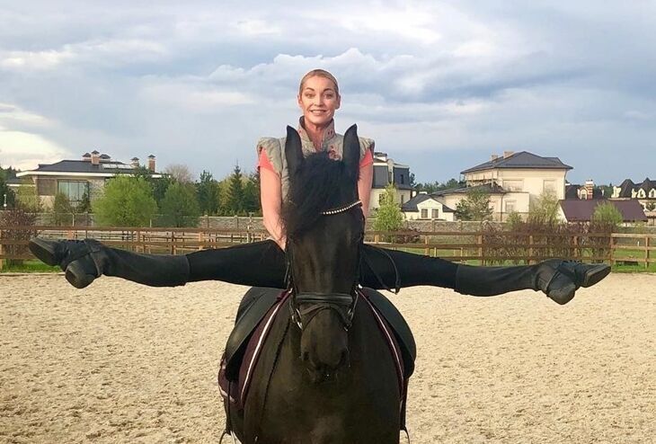 Среди недавних пополнений в коллекции Волочковой — шпагат на коне, шпагат на мокрой траве и, конечно же, шпагат в бане.