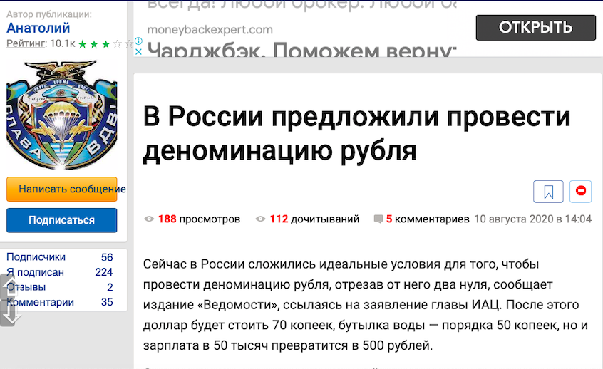 Вот скрин, сделанный в 10.10 утра по второй статье нашего волшебника Анатолия: