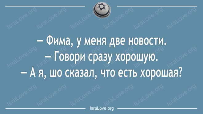 — Изя, ты тоже хочешь шо-то сказать за усопшего Рабиновича? Но учти: про покойников либо ничего, либо хорошо. — Да-да, Ребе. Так вот, Рабиновича с нами больше нет, и это хорошо.