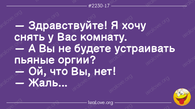 — Мадам! Когда вы улыбаетесь, у меня возникает непреодолимое желание пригласить вас к себе. — О-о-о... Вы такой донжуан?! — Я вас умоляю! Я стоматолог...