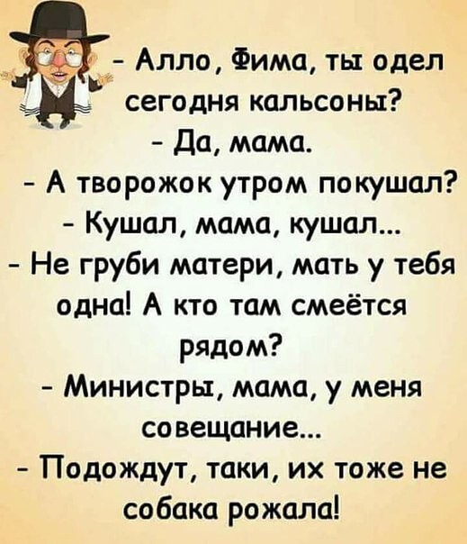 — Изя, ты тоже хочешь шо-то сказать за усопшего Рабиновича? Но учти: про покойников либо ничего, либо хорошо. — Да-да, Ребе. Так вот, Рабиновича с нами больше нет, и это хорошо.