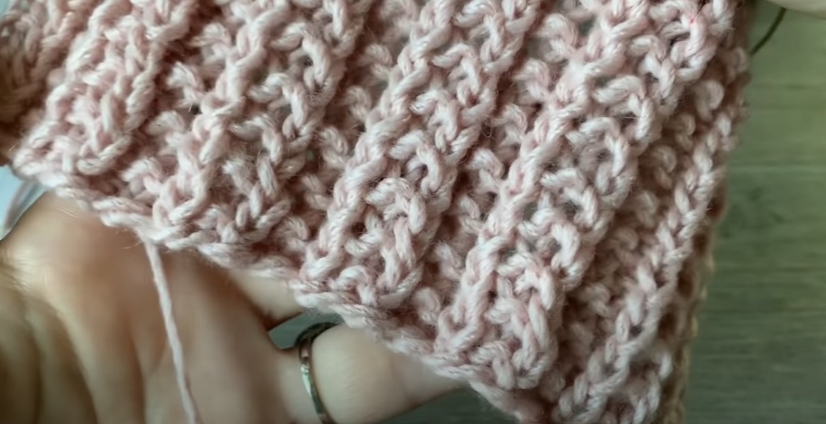 Отличный вариант – оригинальная, двухсторонняя резинка. Такой шарфик будет хорошо тянуться и выгодно смотреться с обеих сторон. Цвет можно выбирать любой, данный рисунок замечательно подходит как для постельных, так и для ярких тонов. Он достаточно просто вяжется, доступен даже начинающим рукодельницам