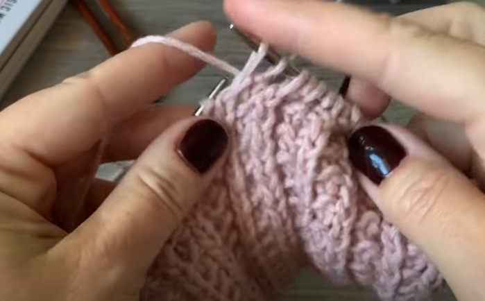 Первый ряд провязывается полностью зав переднюю стенку, по схеме лицевая – изнаночная. Первая петелька всегда снимается, а последняя провязывается изнанкой. Благодаря этому получается ровный, приятный на взгляд, объемный край.