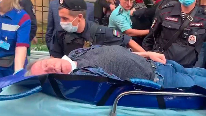 Ранее было опубликовано видео госпитализации артиста. Медики вместе с судебными приставами погрузили
