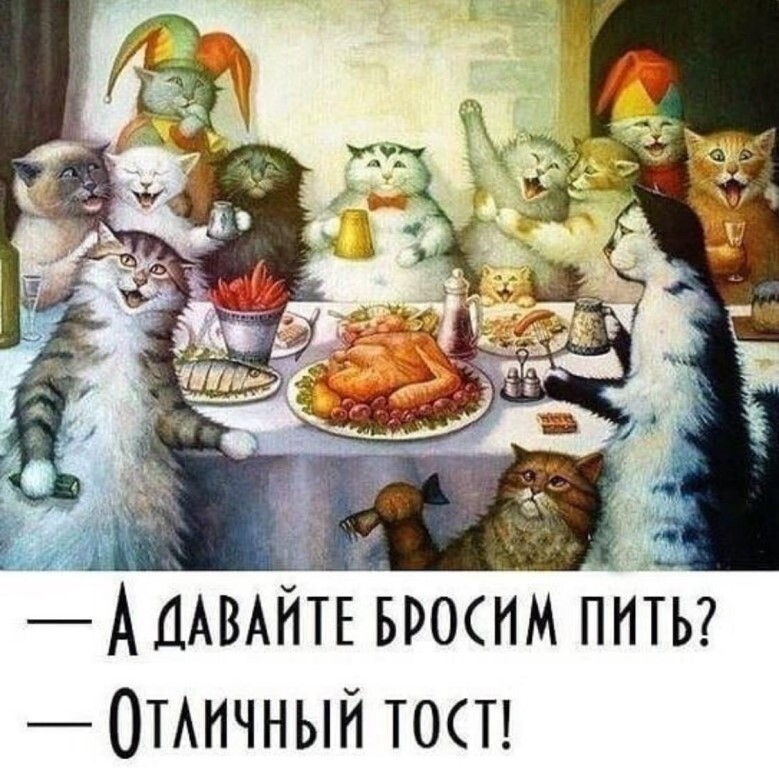- А, давайте лучше выпьем по три рюмочки и пойдём коту морду бить...