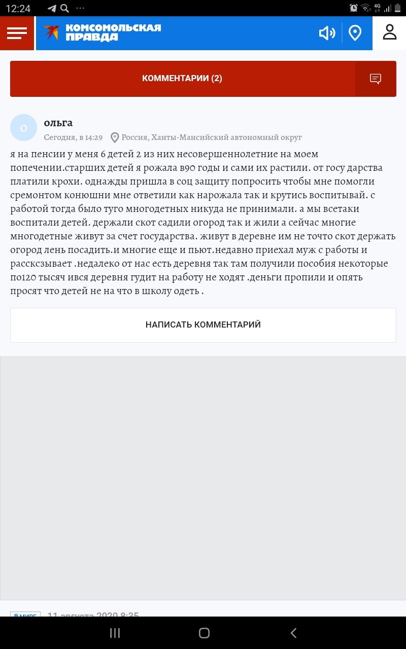 Вы,реальная блондинка. Не надо понимать все буквально: ремень-попа. Расширте горизонт своего мозга. Пряник уже был: помогло государство деньгами во время самоизоляции. Что кто-то сказал спасибо? Рты еще больше поокрывали. Чего только не пишут в комментариях: государство должно, государство обязано. Одна так и написала: что ее дети нужны государству и нам. Государство даст, а они бухать буду. Мне ее дети точно не нужны. Денег дайте на школу, это наши налоги и т.д.Шкала борзоты просто зашкаливает у некоторых. Мне вот одно не понятно. А,почему местные чиновники не помогают своему населению? Куда деньги девает местная администрация. Вы,если хотите что-то мне написать, то сначала ознакомьтесь с комментариями которые были до.