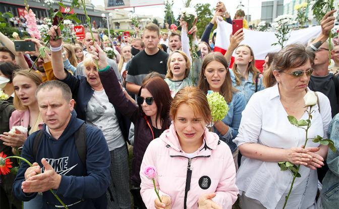 — Сейчас развивается «бархатный» протест, — рассказывает Александр Коц. — Это мирная форма протеста, когда люди выходят на улицы с цветами, стоят вдоль дорог, машут шариками, им сигналят проезжающие автомобили и все ведут себя спокойно. Таких людей сейчас стало больше на улицах Минска. Сейчас милиция не препятствует распространению такой формы протеста, хотя, буквально, два дня назад такое было невозможно. Сразу же приезжали воронки и упаковывали протестующих. Судя по всему, милиции дана команда такую форму протеста не пресекать.