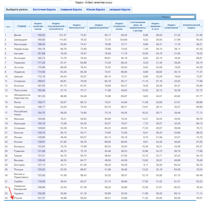 В списке европейских стран нашему государству отведено и вовсе последнее место: