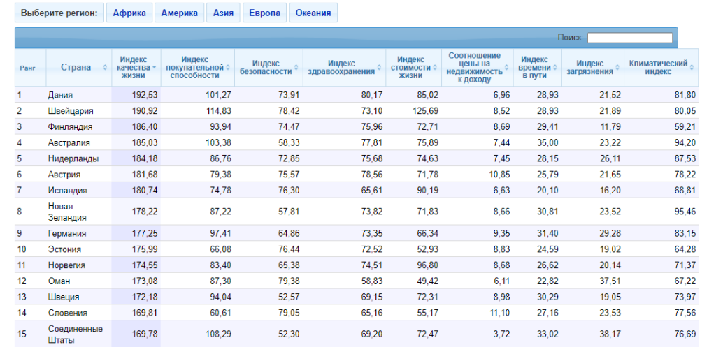 Чтобы выяснить данные результаты обратимся к ежегодному статистическому исследованию, проводимому сайтом Numbeo, который публикует рейтинг уровня качеств жизни в странах мира.